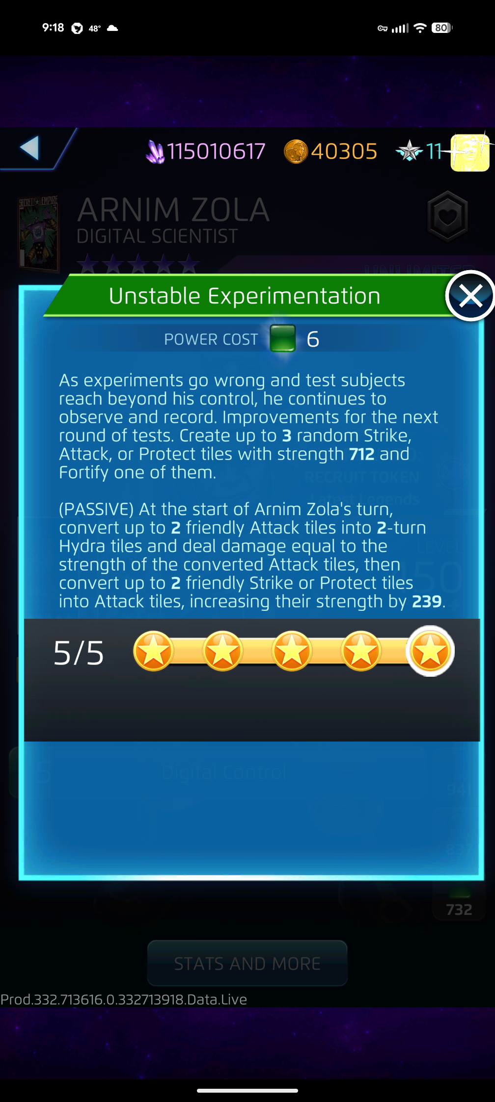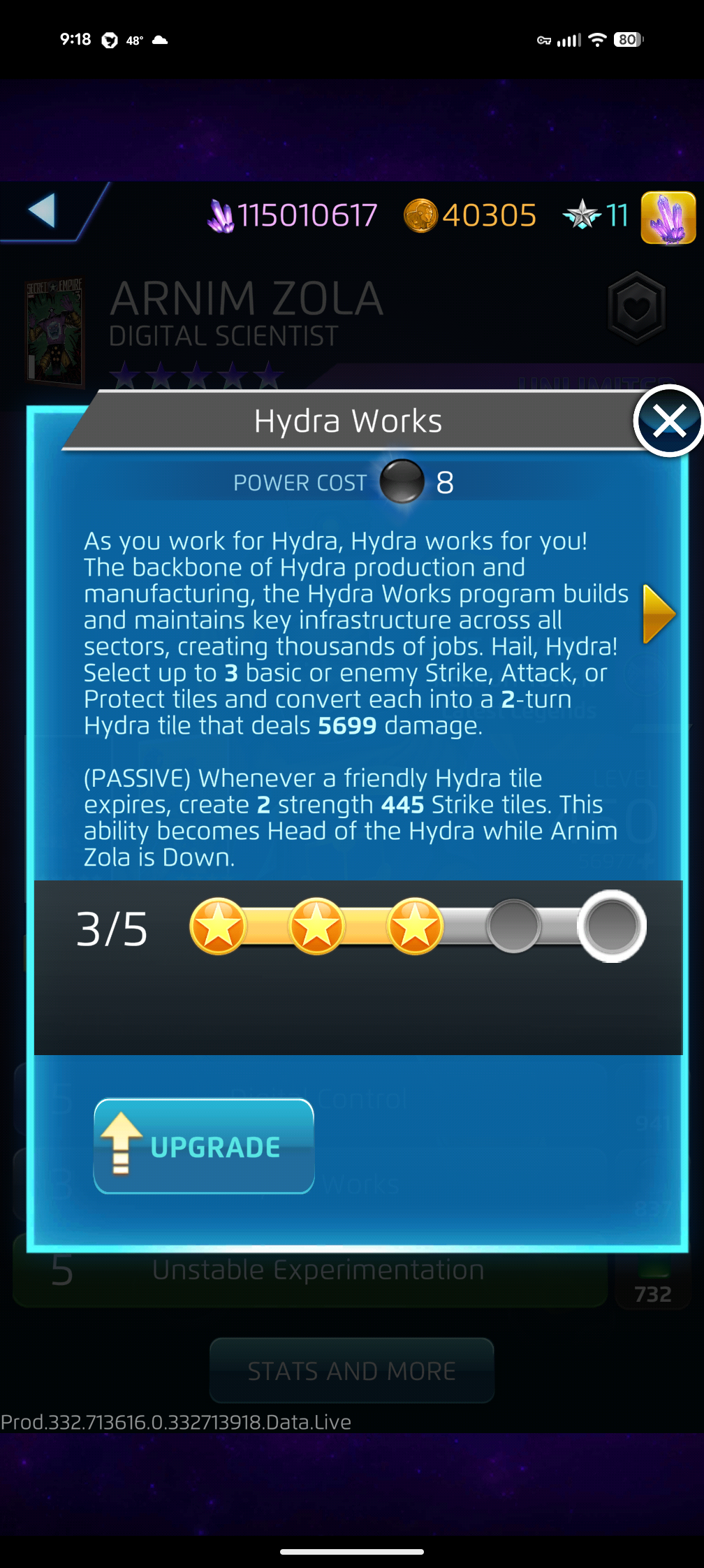 I would still be glad to add levels to him since he is at least high health and he wants match damage, but he's no where near the best tank and using his match damage buff is awkward, you've either had to eat a ton of damage, or drained all of your AP for something others do for way cheaper / free.