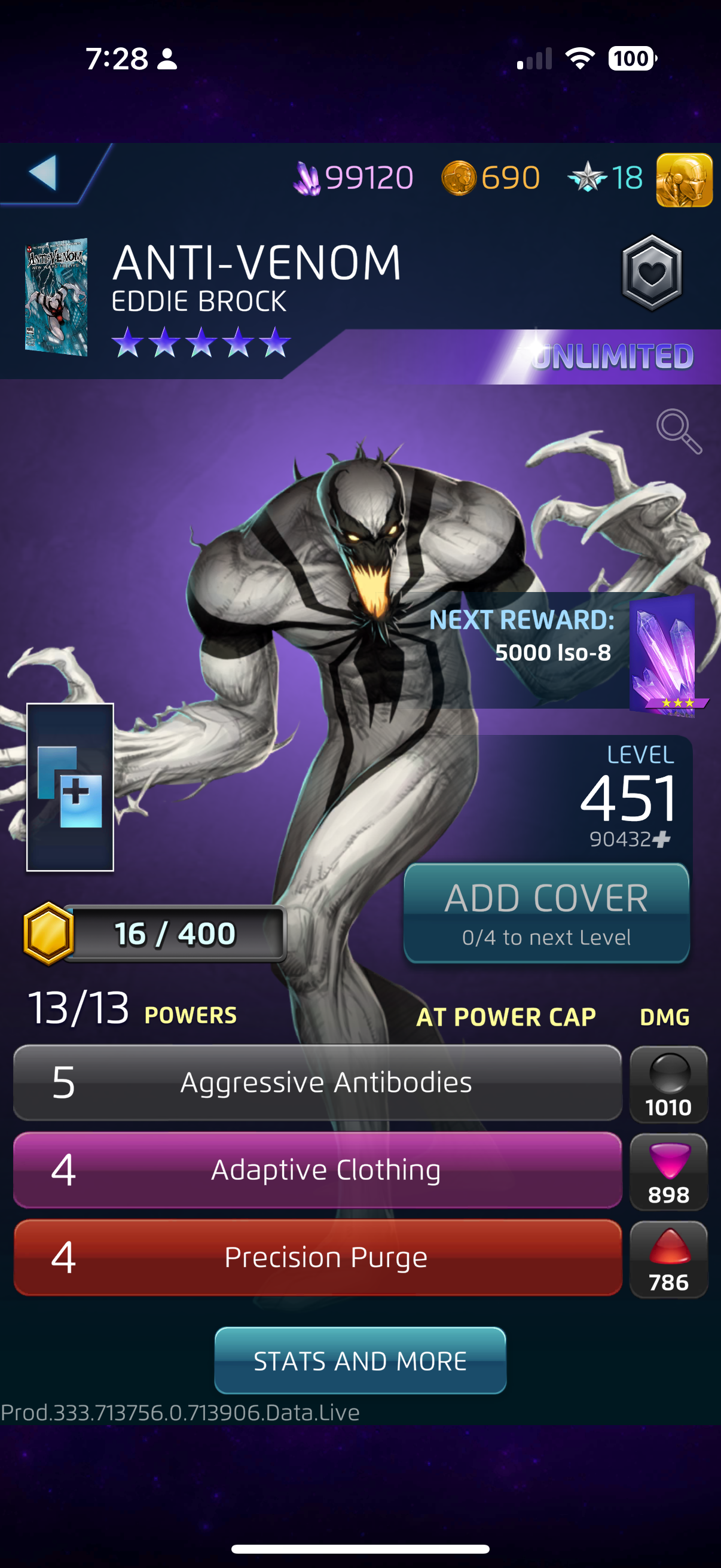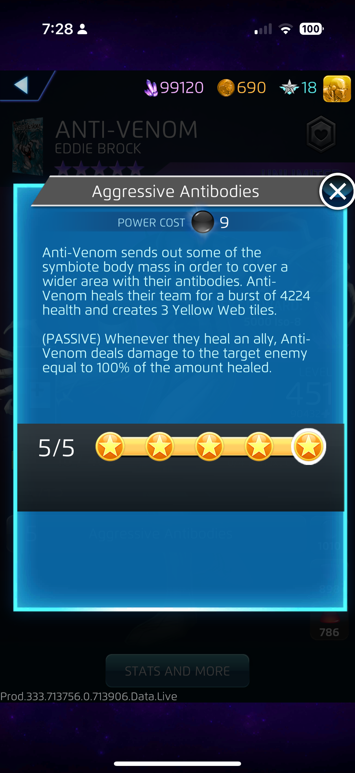What's funny about Anti-Venom is that, as long as they let you use the 5* in DDQ, he will probably get very good usage numbers. Which means they won't be rushing to buff him.