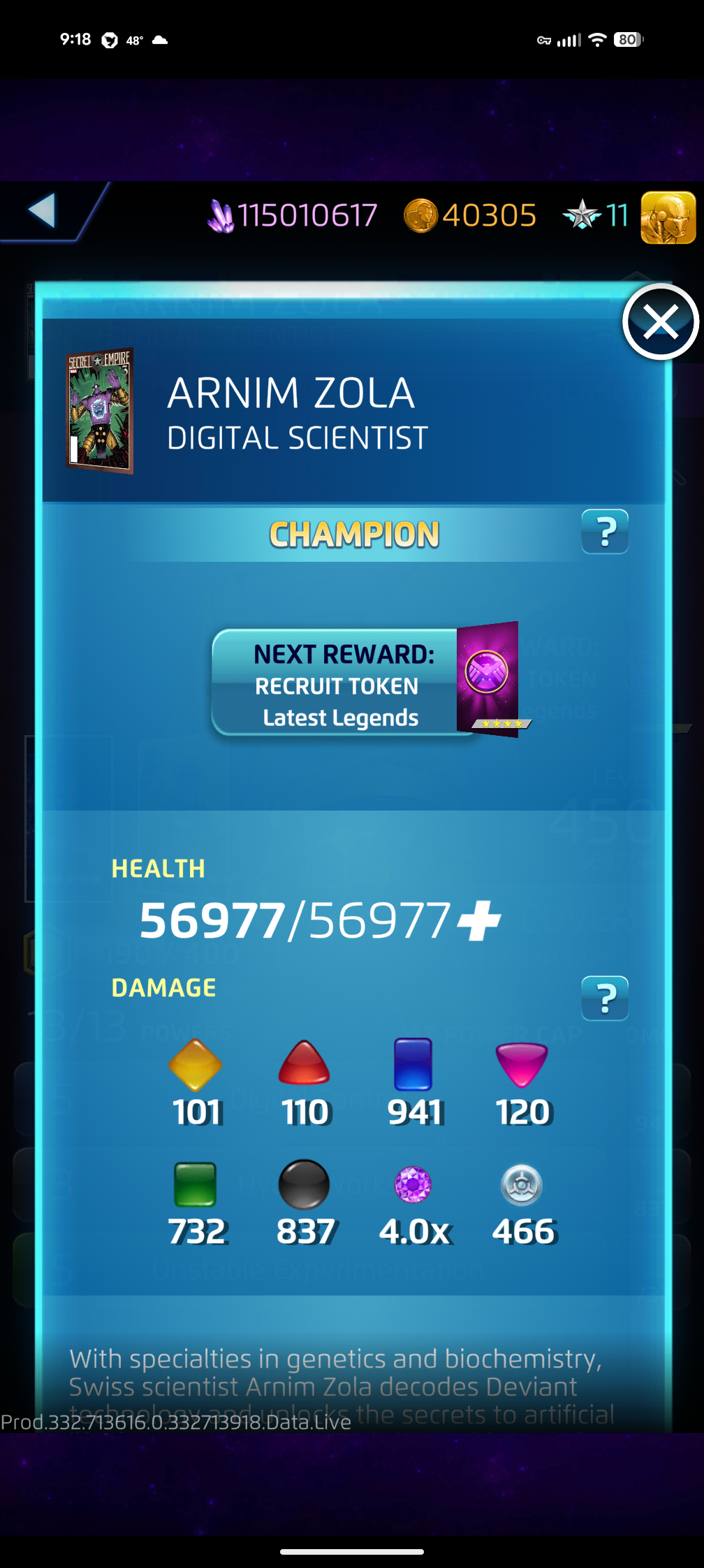 Lvl450 no boost -- looking forward to trying out the Zemo/Red Skull/Zola team now that he's 5*! (It was pretty good before)