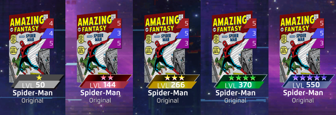 When ascension first rolled out, i had some concern (not like keep you up at night concern, just you know, video game concern) that we would start to see specific ascension level requirements, or more base character requirements, and decided to re-roster 4* sabretooth before I dumped covers into his 5*. He was the only character I ended up doing that with, but I wonder if anyone else made a point to try to roster one of each tier, or if everybody was just "ascend, max, roster, repeat" and just do organic whatever happened.I had similar thoughts that level requirements might come in to play at somewhere down the line, so I made sure that I kept a copy of each character at their original level - meaning that every ascended character I do have is actually a duplicate. It has been fairly easy to do it this way, considering that most of my ascended characters have come from vault pulls or HP offers, and allowed me to leave the original versions as they were.