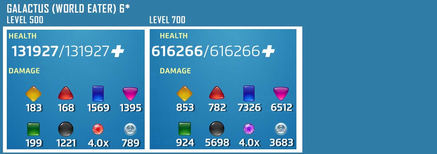 (PASSIVE) Galactus cannot be Stunned or sent Airborne. For every 11779 total damage Galactus takes in a turn, create a Cosmic tile. Prevent all damage to Galactus beyond 54970 in a turn. This passive is always Unlocked.