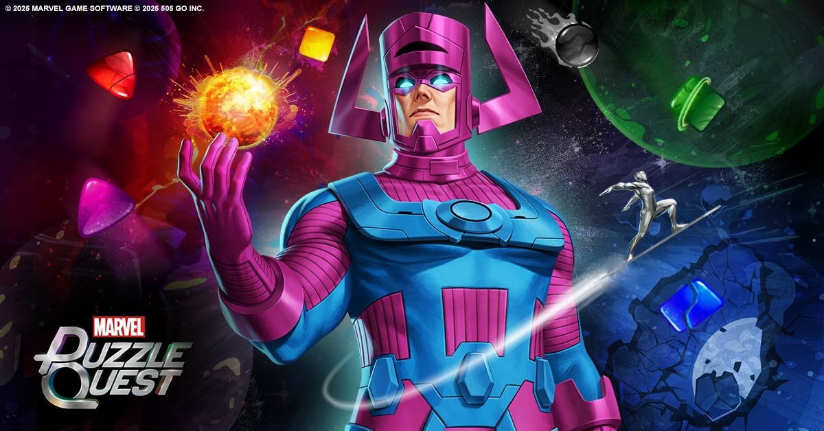 Galactus (World Eater) is the first 6-star character to enter Marvel Puzzle Quest, and his enormous presence makes him the perfect choice to debut this new rarity tier. As a literal cosmic force, Galactus embodies the scale and impact we want players to feel when engaging with the 6-star experience, clearly setting him apart from the rest of the roster both thematically and mechanically.