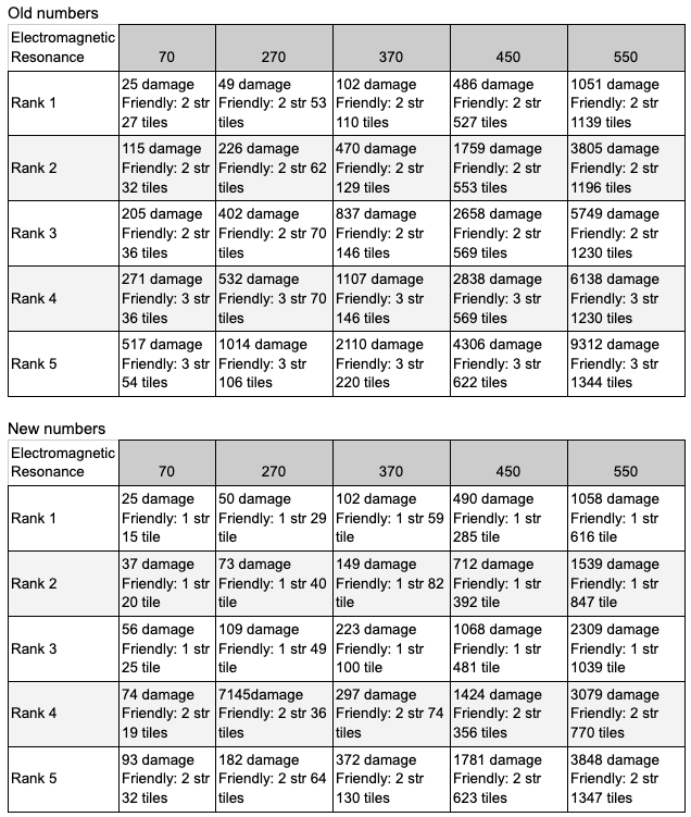 This ability by itself is unchanged. Due to the fact that Electromagnetic Resonance is no longer always multiplying its power every turn, it works pretty well as it is. We decided to leave it alone due to the fact that players aren’t going to be using the ability full time, as they’re likely to swap off to its partner Electromagnetic Resonance.