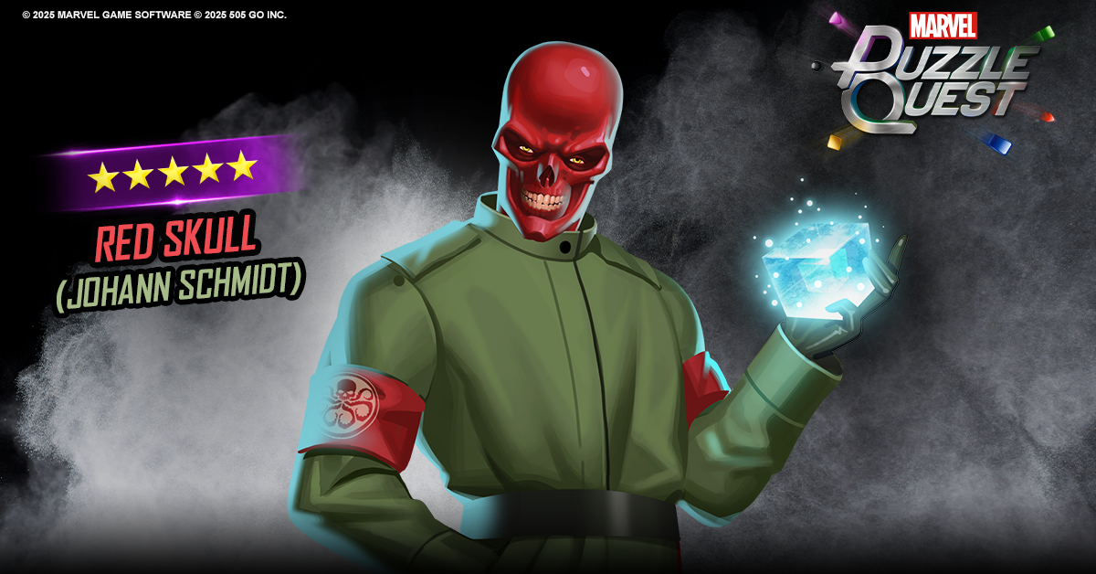 The Red Skull scatters his Dust of Death, leaving his victims disfigured with his own horrifying visage. Deal 182 damage and create 2 1-turn Dust of Death tiles that deal 182 damage. This ability’s damage and the damage of Dust of Death Repeater tiles increases by 45 each time one activates.