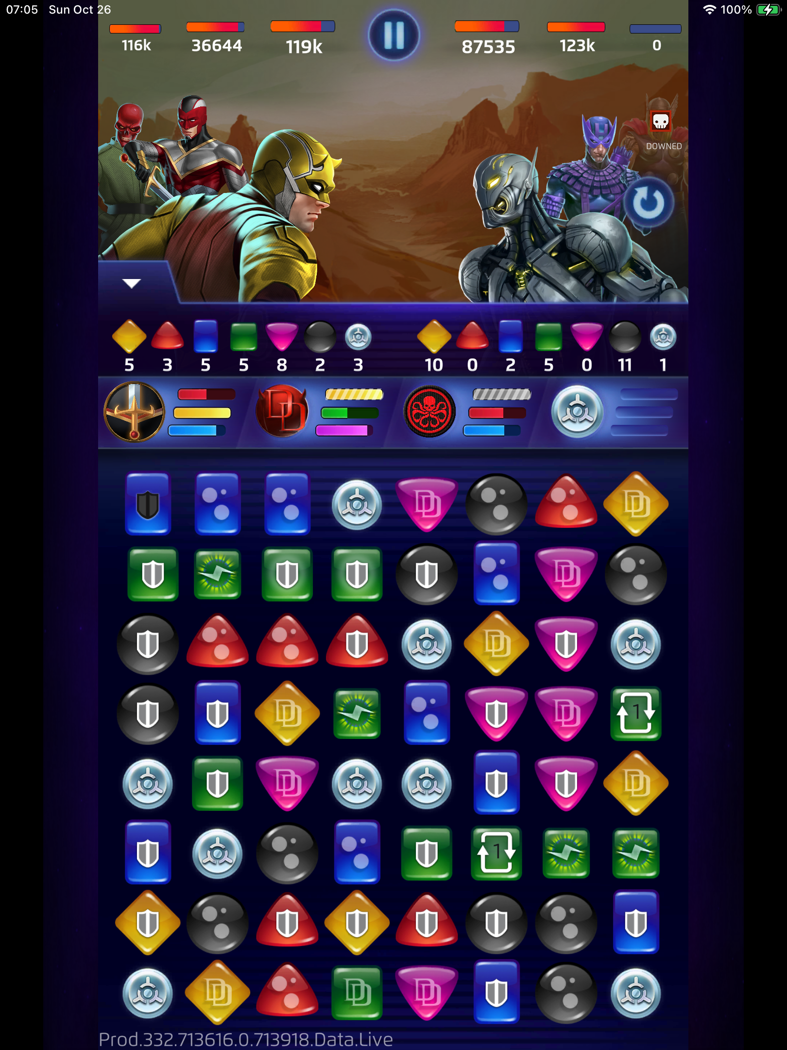After a freeze during 4e node, restarted and healed and tried again. Within 3 matches, board stopped updating after making a match. Had all these 3 and 4 matches showing so didn’t know what I could match. Kept making a match in the 4 purpink row. No damage registered and no AP gained. Enemy team kept moving the purpink to the left into the 4 row, then my dmg would register but still no AP gained for either of us. We essentially made the exact same moves over and over until my delayed match damage downed them all. Has anyone else seen this?