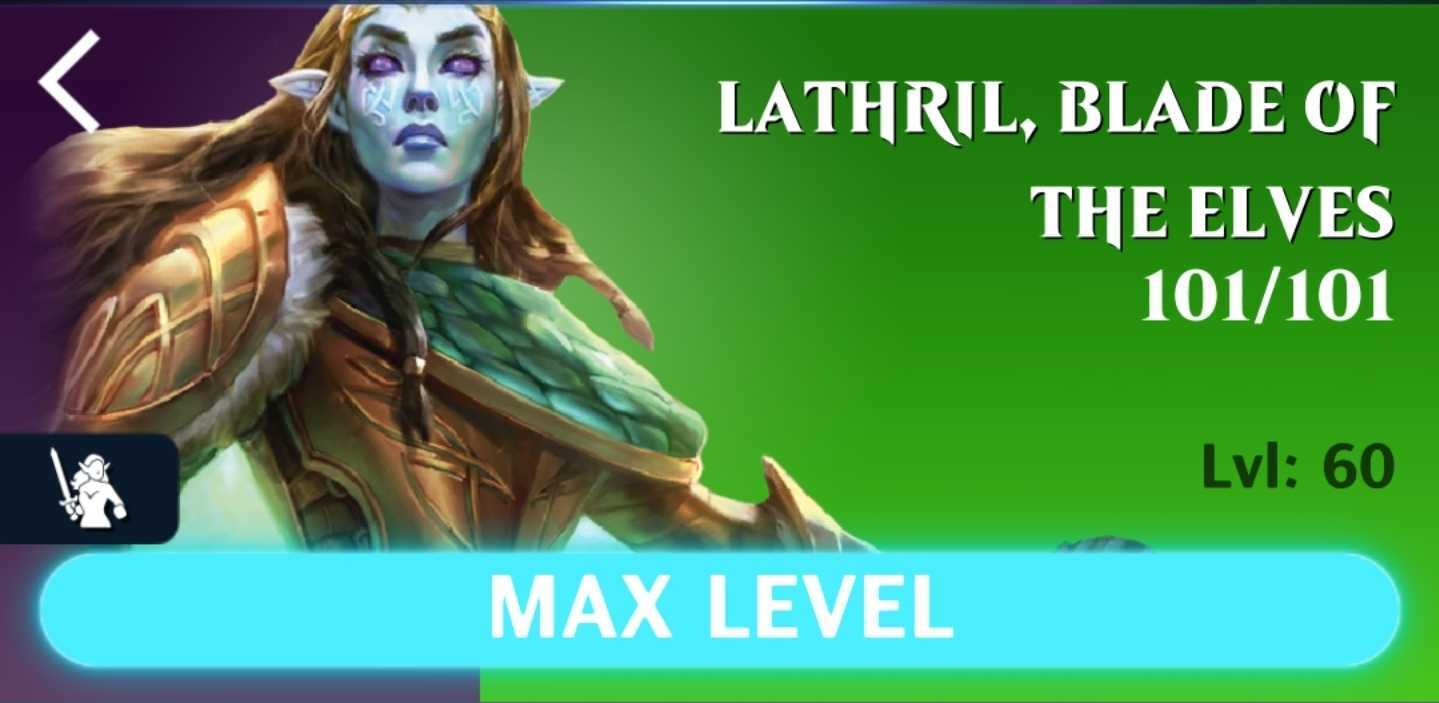 - In the age before the elven kind divided, there stood Lathril, queen and warrior of a glory long faded. Her presence commanded armies, her blade carved paths through fate itself. To her people, she was the edge and the shield, the brilliance that turned despair into defiance. She fought not from a throne but from the front lines, where the cries of battle met her calm resolve. Even after sight was taken from her and she became one of the Einir of Kaldheim, her vision never dimmed - for she saw with the will of her people. In every whisper of the forest, in every glint of elven steel, her legend endures - sharp as the first dawn.*