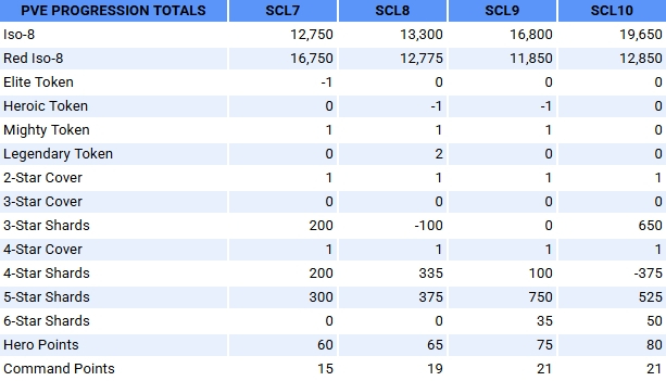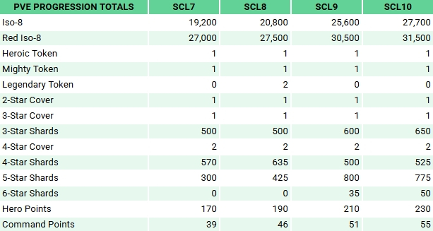 I created my own version to track the updated progression rewards, what changed, and how they compare across the updated SCLs in PVE. Hope this helps!