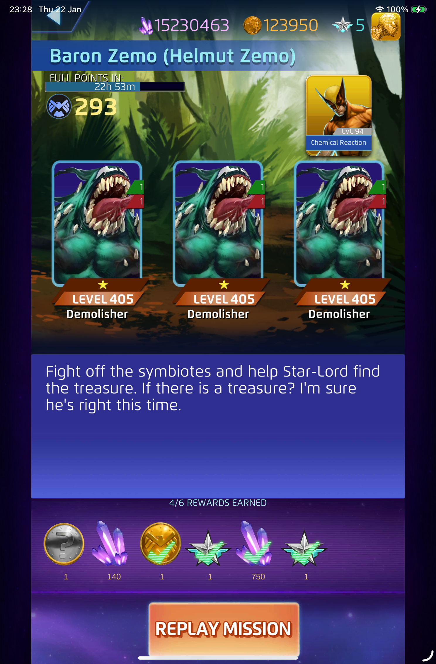 Sorry, the bit about two 4-stars was a mistake — I do have Zemo, but yes, he’s a 5-star. The other characters are 4* Sam Wilson, 3* Steve, 2* Storm. Have checked and this is SCL8.