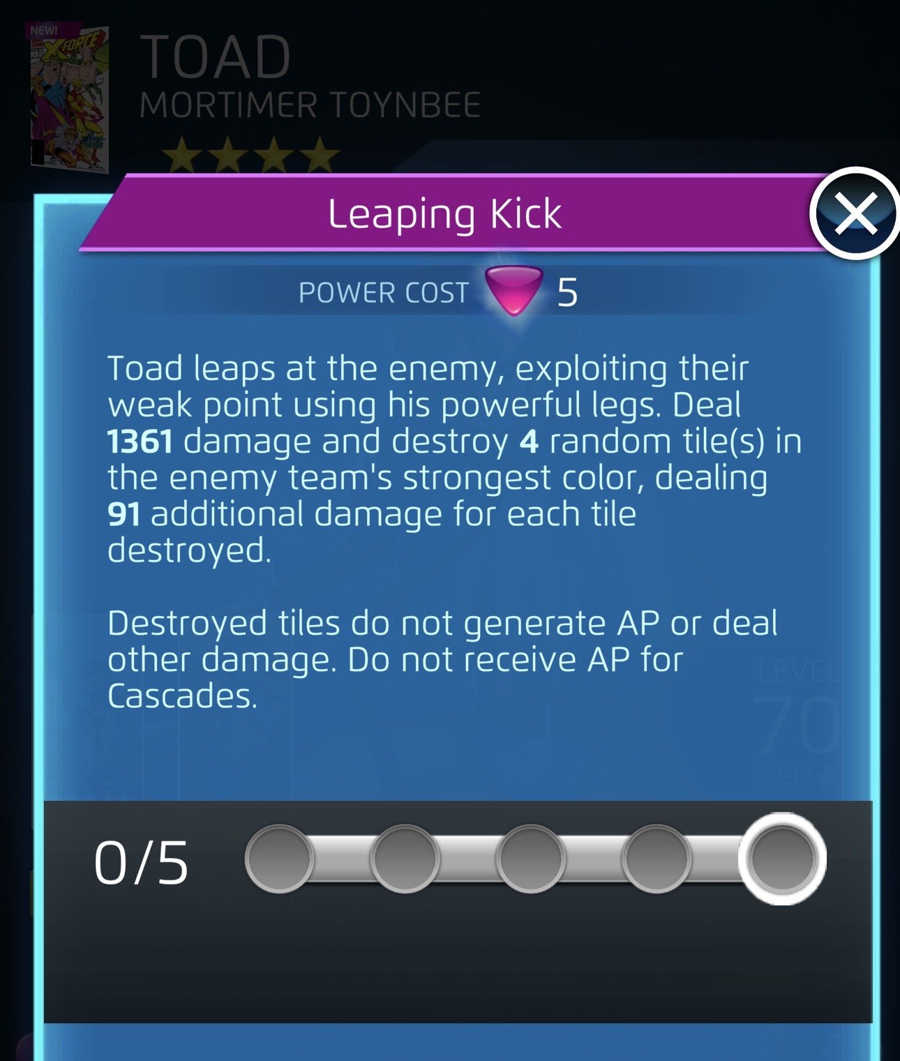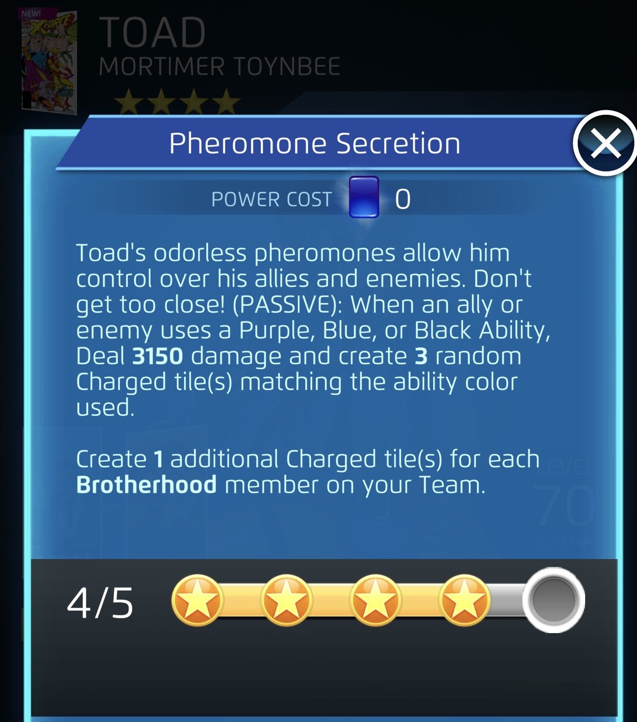 To be fair I think it’s only toad vs toad matchups that still result in bonkers amounts of charged tilesNo, Toad's passive blue still works well by himself creating a bonker amounts of charged tiles with some like HE/SC/Ascended35Namor. Basically anyone who can create (and especially place) crits using Purple/Black/Blue and just rinse and repeat. Is it more bonkers with two Toads? Absolutely. But all it takes is one Toad, even with the new changes.