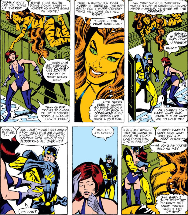 Opening disclaimer - There really is no excusing what happens in the issue and although Bob Hall has kind'a collaborated Jim Shooter's explanation of the misdrawn panel, there are definitely other parts in it where Hank is clearly being an absolute scumbag and those are Shooter's words in the balloons.Now, some extra context - Hank had at this point suffered a nervous breakdown and was mentally ill. This is further witnessed by him then basically embarking on what can only be called a nefarious supervillain scheme to try and clear his name at his upcoming Avengers Court Martial for misconduct. Lets also reflect that the story doesn't let Hank off free at all - when the Avengers see Jan with a black eye they are appalled. When Hank grovellingly tries to apologise the Wasp tells him how sick she feels at the disgusting thing he has done. The two divorce.The history of Hank is troubling even prior to this. I'm not sure he did "treat her like garbage a lot". In fact, that is something that seems to have been assumed or tacked on as revisionist history. Not to say that all was roses. He had a history of mental illness - when he first creates the Yellowjacket persona it is because he has been accidentally exposed to an explosion during an expirenent which warps his mind (he is convinced he has actually "killed" Hank Pym!) - the Wasp figures it out and plays along! They actually get married when he is not in his right mind! Later on - he suffers another mental breakdown and is taken advantage of by Ultron - he is again for all intents and purposes completely insane.The Pym's relationship was fraught with other issues all along. The Wasp would mercilessly flirt with other heroes to make Hank jelaous then suddenly turn all her affection on him. He never wanted to be an Avenger but would rejoin the team to make Jan happy. Despite being brilliant, he could never really get things to work and his experiments ended in at least two high profile cases that fell into villainous use. He had profound guilt that Jan funded his work as she was already a wealthy heiress and could throw money at his affection.All of this gave Shooter a pretty good build up and justification for Hank to be a fall guy and to examine the Pym marriage. That backhand though! And then they let the letterer add that awful "WHAK!" - Yeah, it might have been an error but you sure compounded it Marvel! In the end Hank is redeemed in the story but not in the reputation department with comic book fans, especially those who may never even have read the stories. Then Ultimates re-told this story in an even more twisted manner and well, Hank was done for.Anyway the storyline had two serious underlying themes to it - mental illness and spousal abuse. And both rarely survive that "WHAK!". Jim Shooter says that he never intended to portray Hank as a "wife beater" but that is what gets remembered sadly.4 -